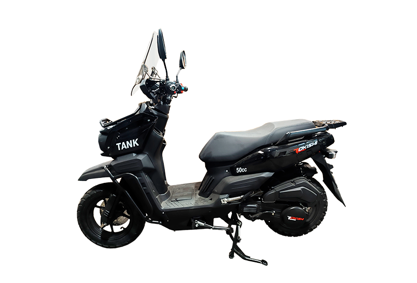 Самая главная и важная особенность скутера Tokishi Tank это его мотор. Мотор 170 см3 (50см3), который работает в паре с вариатором, дает хорошую динамику и отличную экономичность — всего 3,2л на 100км. При этом Tokishi Tank не требует регистрации в ГИБДД и категорию А. Достаточно иметь водительское удостоверение на любую категорию. Это очень удобно и предоставляет возможность пользоваться скутером большинству гражданам. Вы можете купить скутер для себя, для вашей пары, для родителей, которые живут в деревне или поселке. На Tokishi Tank можно ездить на работу, минуя пробки, отправляться на рыбалку по лесным тропам, ездить в магазин в частном секторе или на даче. Ездить на учебу, на пляж, в путешествия. Tokishi Tank подарит вам свободу и драйв!